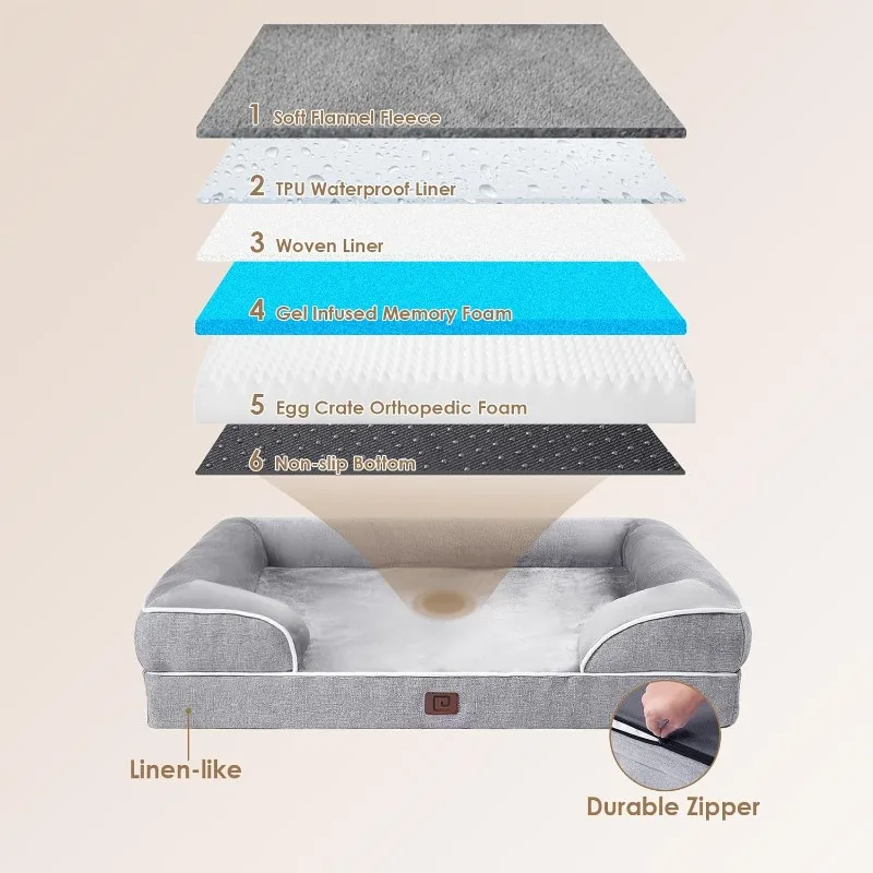 MEMORY FOAM: The orthopedic dog bed features memory foam and egg crate foam to provide even support and pressure relief. It offers a good balance of softness and support, making it particularly suitable for elderly dogs to alleviate joint pressure.